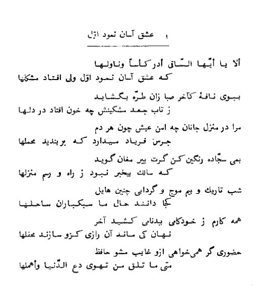 Alternate versions of the first ghazal in Hafiz's divan